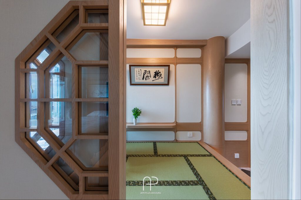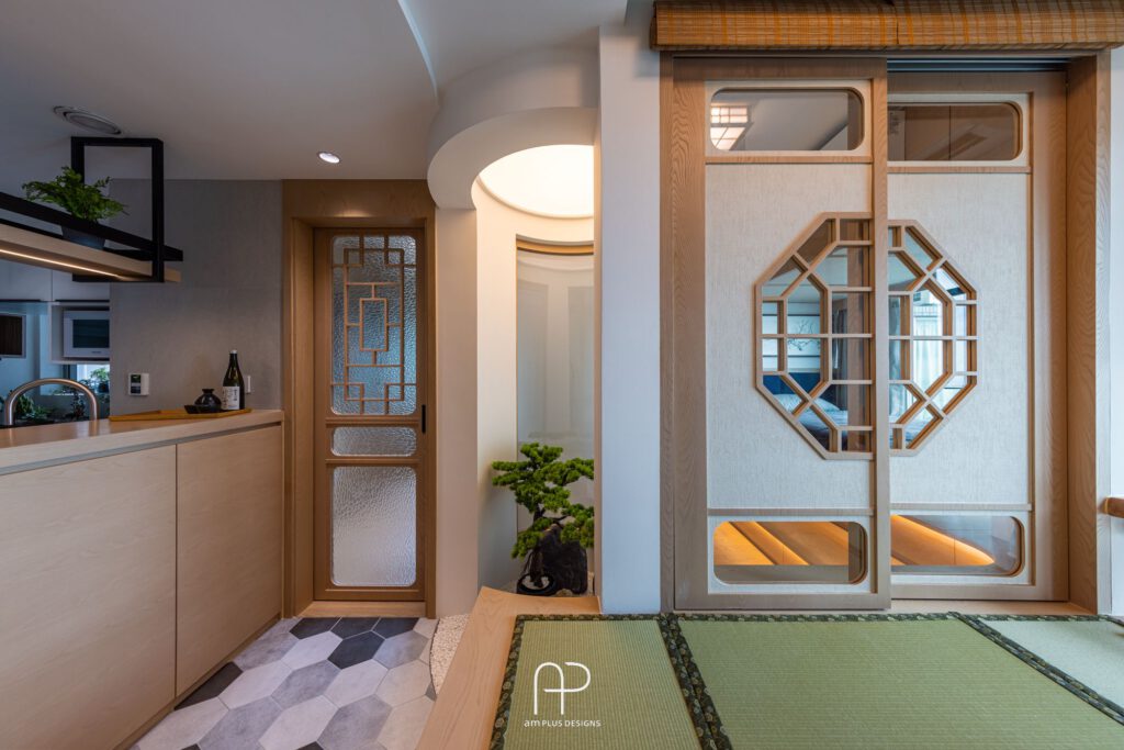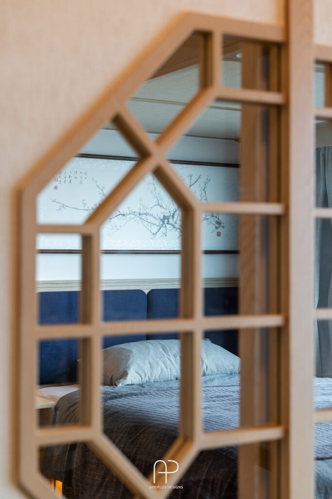 • 隱私與和諧: 設計師巧妙運用多扇拉門區隔空間, 保留居住者各自的隱私,同時維持整體空間的一致性。典雅的木製窗花更添設計巧思。